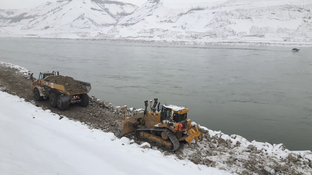 PRHP completed work on the south bank cofferdam on April 7, 2017. The 1.6 km-long cofferdam has been constructed along the south bank of the Peace River and is a temporary structure that works as a barrier to impede groundwater seepage during construction of the next phase of the project.